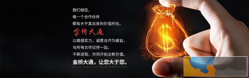作为一家资深的股票配资公司,我们提供1:5倍杠杆股票配资,只提供券商独立个人账户,没有分仓户,操作方便我们佣金只收取万3!(很多收取千3-5)金桥大通投资提供的股票配资仅收管理费(利息),无其他的费用,利息的高低根据配资的金额大小决定。金桥大通股票配资的流程:1.首先双方商议好股票配资的大小利息费用,并确定合作意向。2.股票配资方把个人资料信息发送给股票配资公司3.股票配资方打一定比例保证金到配资公司指定的银行账户,配资公司收到保证金提供证券账户密码,验证证券账户。4.证券账户验证无误,确认真实,股票配资公司做合同并发送给配资客户确认内容无误。